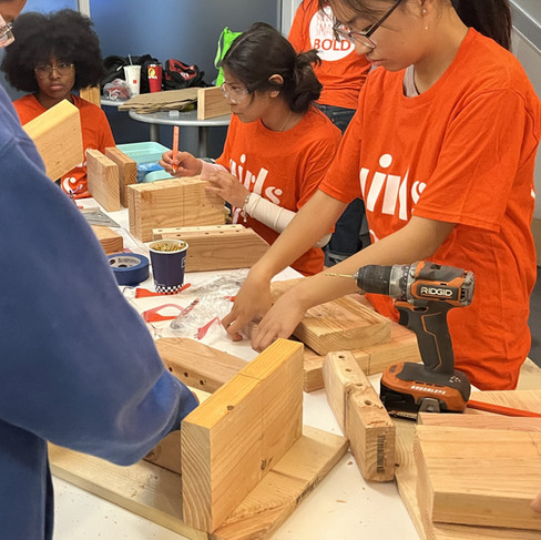 For many of the girls, it was their first time working with power tools or engaging in a hands-on building project. Seeing women leading the space—both teaching and modeling careers in the trades—was a powerful shift in perspective.